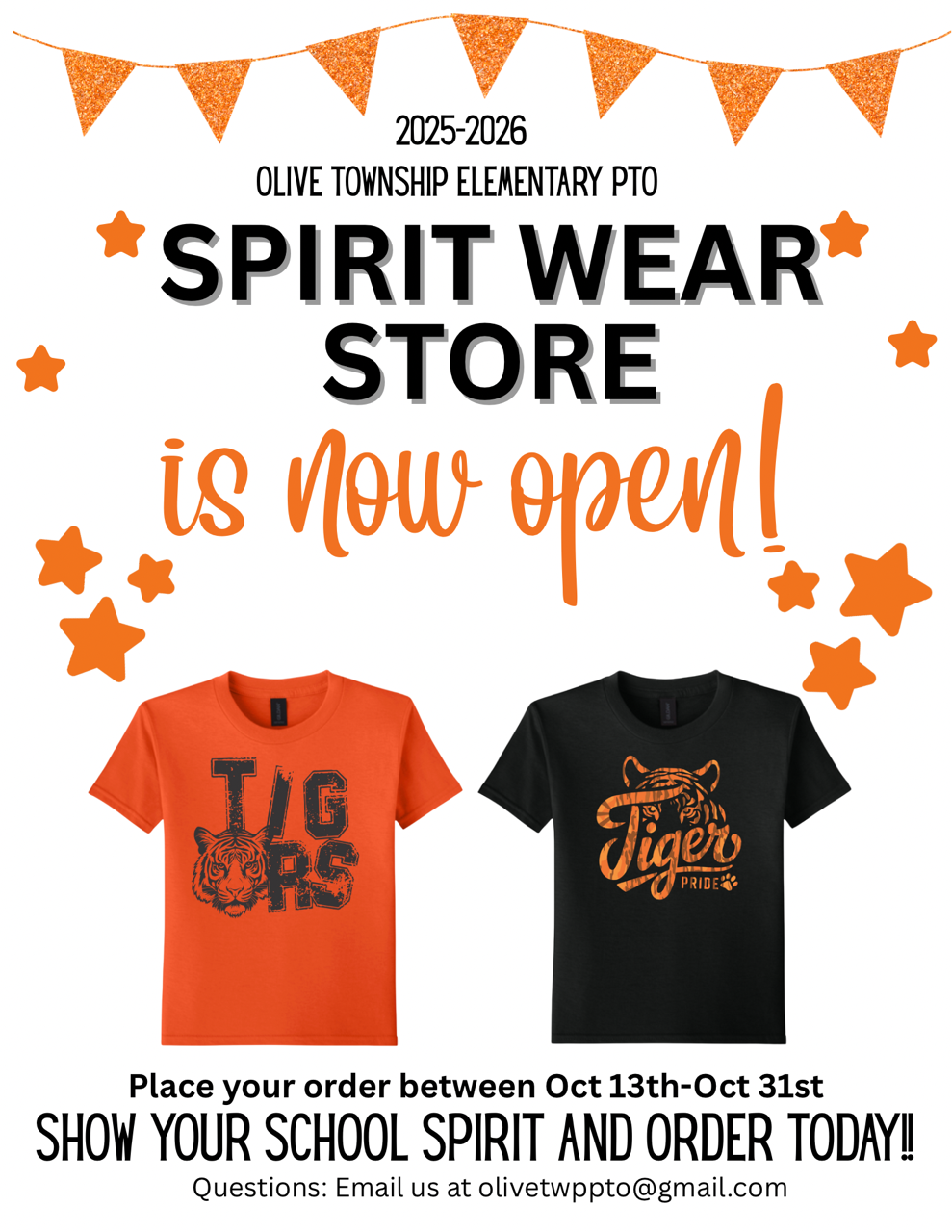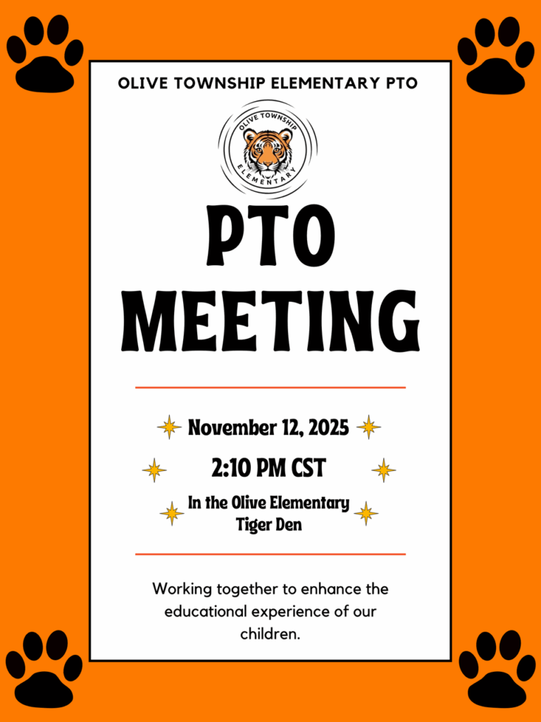 Welcome to the 2025-2026 school year! Our mission is to support the students, teachers, staff and families of Olive Township Elementary School. The Olive Elementary PTO sponsors events, activities, teacher appreciation, and much more. There are many ways for you to get involved!
