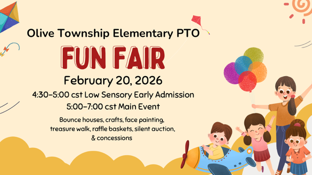 Welcome to the 2025-2026 school year! Our mission is to support the students, teachers, staff and families of Olive Township Elementary School. The Olive Elementary PTO sponsors events, activities, teacher appreciation, and much more. There are many ways for you to get involved!